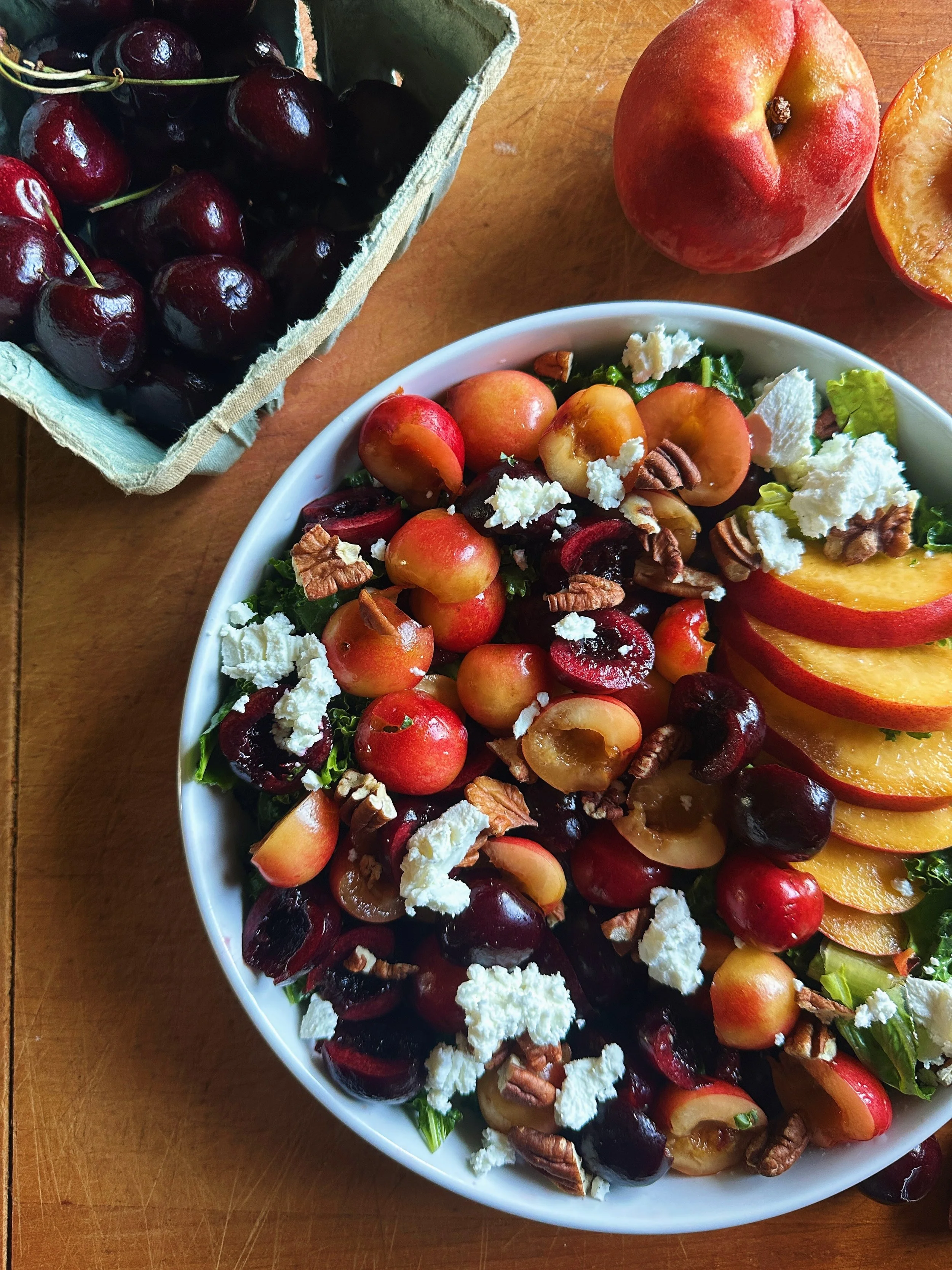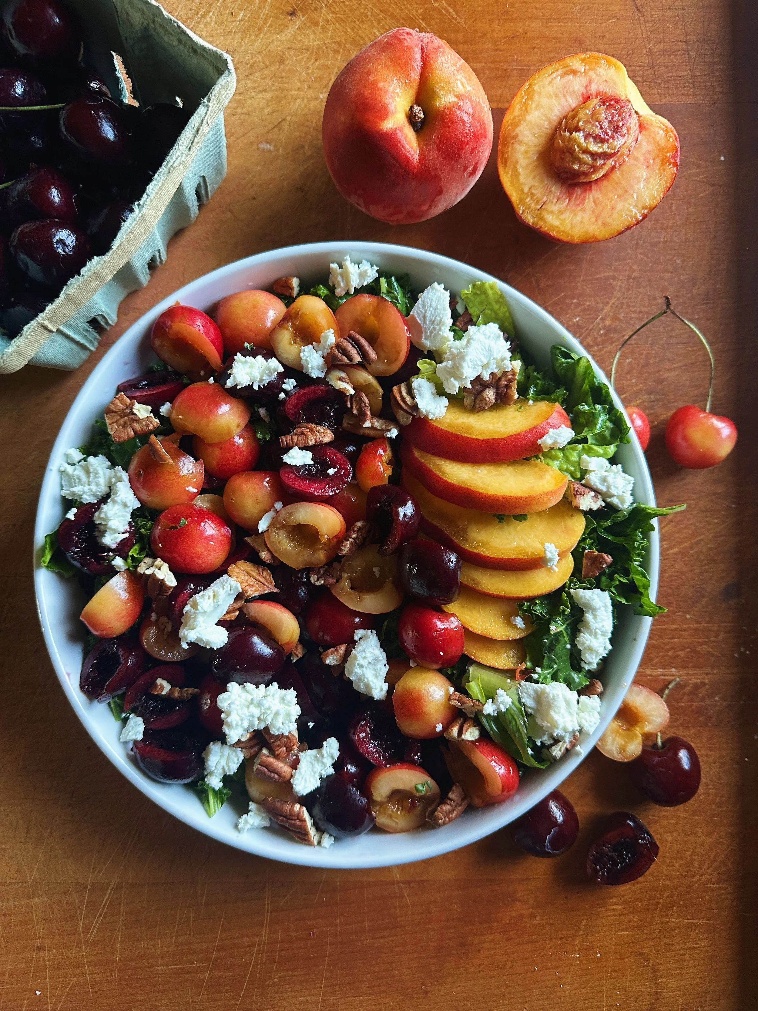 🍑 Kale, Cherry & Peach Breakfast Salad